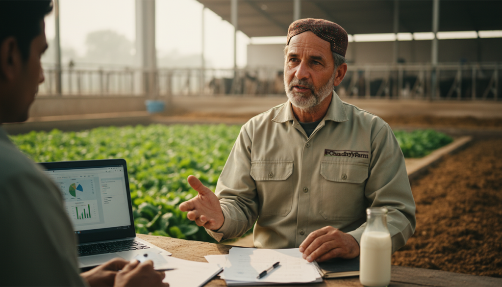 A defining strength of Chaudhry’s Farm is the integration of digital herd monitoring systems within a rural farming framework. We maintain structured digital records for breeding cycles, milk production, health events, vaccination history, and growth milestones.Through dashboards, remote oversight tools, and continuous data analysis, we improve herd productivity, reduce preventable losses, and strengthen long-term farm sustainability. This blend of traditional agriculture and modern farm analytics represents the future of dairy farming in Punjab.